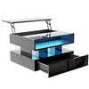 Mondawe High Coffee Table w/ Glass Top + LED Lighting and Drawer - High Gloss Black