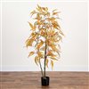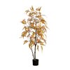 This 5’ artificial autumn wispy eucalyptus tree brings a mellow, fall vibe to any space. Inspired by Vermont fts landscape, the slender trunk gives way to an array of seeding eucalyptus leaves, their orange-tinged tips will remind you of the season fts crisp turn. Crafted from high-quality materials, feel free to bend the branches to fit in your space. It stands 5 ft from a black nursery pot—allowing you to DIY and add in your favourite planter. This faux eucalyptus tree offers a burst of fall colour with the maintenance and perfect for styles from classic to contemporary. Display for Thanksgiving, Halloween and harvest parties.