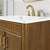 The Juliette vanity by OVE Decors features fluted accents and slim shaker details to create a furniture piece that will bring timeless charm to your bathroom renovation. A perfect balance of contrasting hues, its white quartz countertop sits upon a handsome warm walnut cabinet that is complemented by your choice of brushed gold or brushed nickel hardware. The ideal mix of form and function, you’ll love the ample storage concealed behind 2 soft-close doors with an adjustable interior shelf. With all these features and more, Juliette is a great choice for your small bathroom or powder room.