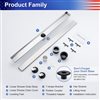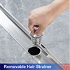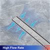RAINLEX linear square pattern drain offers a decorative solution to standard shower plumbing fixtures. It enhances your shower experience with a linear shower drain. Its attractive, sloped channel enables seamless and complete water drainage. The premium hardware surface finish allows easy cleaning and ensures long-lasting durability. A removable strainer basket prevents pipes from clogging. The 2-in outlet diameter with shallow V profile promotes proper drainage at an average of 42.5 L/min without filter mesh, and the improved internal slope virtually eliminates water remaining in the channel. Drain flange not included in the kit.
