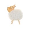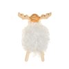 - Fluffy white body wooden legs and head