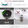 - The integrated filter basket efficiently traps debris, preventing clogs, and safeguards dropped valuables from going down the drain