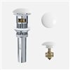 Undermount Sink Pop-Up Drain w/ White Ceramic Cap With Overflow - White
