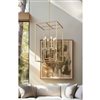 A multi-motif design adds versatility for illumination of sophisticated living spaces as this six-light chandelier emulates a version of open metalwork cage styling. Warm modern gold finish steel construction embraces a geometric silhouette, with internal candelabra holders and dimmable lighting ideal for setting moods and adjusting to time-of-day needs.