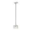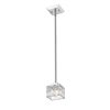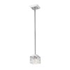 A narrow profile enhances the stylish flavor of this chrome steel one-light mini-pendant. Light up a modern space with an exquisite fixture featuring a boxy crystal cut clear glass shade and a shiny chrome frame.