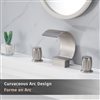 Add a splash of contemporary style and modern elegance to your bathroom with this double handle bathroom faucet. The arc clean lines, horizontal spout and brushed nickel finish of this faucet create a sophisticated, high-end appearance. The unique arc spout provides a smooth waterfall experience, controlled by an easy-to-adjust 2-handle lever, which is designed to meet your needs.