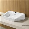 This rectangular sink features a ceramic construction and is designed to be installed as a above counter vessel. This vessel comes with a white enamel glaze finish. This product is ideal for a 3h4-in. faucet.