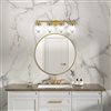 The Myla Collection 4-light wall sconce by Kevin Kraemer is a captivating blend of vintage charm and refined elegance, featuring a radiant brass frame that beautifully complements its clear ribbed glassware. The timeless design creates a warm and inviting glow, making it a stunning centrepiece in any setting. It's perfectly crafted for those who appreciate classic sophistication with a modern touch. Perfect for any bathroom setting.