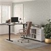 This bundle is perfect for creating an ergonomic office workstation. The electric standing desk can increase your comfort by allowing you to work in a sitting or standing position. Four programmable height options allow you to store your favourite heights. The L-shape allows you to easily place your desk in a corner and optimize space in your office. Keep paperwork and small office supplies organized thanks to both box drawers and the file drawer on the credenza. Two adjustable shelves provide flexibility to fit larger items.