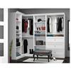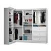 Versatile by Bestar 90-in Corner Closet Kit Durable 1.9 cm (0.75-in) shelves with a burn-, scratch- and stain-resistant finish melamine Finished with attractive molding Each 25-in unit has 2 fixed and 4 adjustable shelves to maximize your space Wire grommet in back panel to allow for access to electrical outlets 36-in unit features 2 fixed and 3 adjustable shelves and 2 poles to hang clothes Drawers are mounted on ball-bearing slides for smooth and silent operation Satin nickel drawer pulls Corner unit has 2 poles to hang clothes and 1 shelf Multiple configure options Easy to install Assembly required Includes: 36-in 3 Drawer/Open Shelves Storage Unit: 35.8-in Wide x 20-in Back To Front x 85-in High Corner Unit: 35.8-in Wide x 35.8-in Back To Front x 85-in High (2) 25-in Open Shelves Storage Units: 25-in Wide x 20-in Back To Front x 85-in High (each)