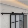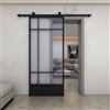 Instantly modernize your living space with the Bastille metal sliding barn door from the Metro collection. The combination of modern design with an industrial influence will be sure to make a statement in any room of your home. Using only quality materials such as tempered frosted glass and black powder coated steel frame, paired with a sturdy rail system, this barn door will help to convert your living space into a functional masterpiece.