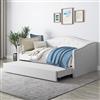 Create a cozy and versatile living space with this daybed, expertly wrapped in a luxuriously soft, easy to clean leatherette. This daybed combines the tufted padded backrest with elegant arch accents and gently sloped arms, creating a timeless style that can elevate the decor of any home. Featuring a hidden trundle design, this daybed creates additional sleeping spots for overnight guests. Bring home this daybed to create a cozy, intimate place to lounge or sleep, making it ideal for any den or guest room.