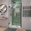 The DreamLine Unidoor-LS is a frameless swing shower door designed with satin black hardware kit to add a timeless style to any bathroom space. This model measures 35 inches wide and features frameless glass design, a patented L-Bar on inline panel for an unobstructed, clean look. The DreamLine exclusive ClearMax water and stain-resistant glass coating adds superior protection from stains and is nearly maintenance-free.