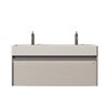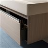 Bring modern elegance to your bathroom with the Theo Wall-Hung Vanity in rich North Norse. Featuring a seamless Sea Salt Grey Nano Solid Surface countertop with integrated sinks, this floating vanity saves space while adding a sleek, contemporary touch. Crafted from durable North Norse plywood with a warm wood veneer, it includes a spacious soft-close drawer with hidden German-engineered glides for smooth functionality. The countertop is pre-drilled for a double-hole faucet (faucet not included), and its surface is smooth, easy to clean, and built to last making it an ideal choice for larger bathrooms.