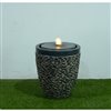 This medium-sized quiet and modern, round, bubbling fountain will enchant your yard or garden and your guests will marvel in its modern beauty. It includes 1 flame-effect warm white LED, pump, and constructed of durable polyresin.