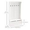 HOMCOM Cream White MDF 3-in-1 Entryway Hall Tree w/ Storage Bench and 5 Metal Hooks