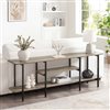 The Celine console table takes your living room style up a notch and impresses guests by adding visual interest to your space. With its two-tiered design and steel legs, it easily blends into a modern contemporary space and slides behind a sofa or sits in an entryway, making it both a stylish and functional addition. Add a tray for keys, a lamp, framed family photos up top, and your favourite coffee table books or decorative accents to make it your own.