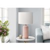 - This stylish 23"h table lamp features a chic, ribbed glossy pink ceramic base paired with a sophisticated ivory fabric shade, making it the perfect accent piece to elevate any decor style