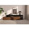 The Tonik 72-in TV stand was created with a modern touch in mind with its clean lines and contrasting volumes. It features 2 convenient storage drawers and open space compartments for decorative pieces, all in a rich black and walnut finish. The Tonik entertainment collection from Nexera is distinguished by its clean modern lines, high-end designer look and contrasting volumes.