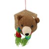 Northlight Stuffed Bear Head Plaque Christmas Ornament - 5-in - Brown and Green