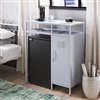 Keep your space chic and organized, no matter how cozy, with the Cache Metal Locker-Style Mini Refrigerator Organizer from Novogratz- a must-have for college dorm room dwellers, home office hustlers, and city slickers alike. This compact wonder packs a punch with its clever mix of open and closed storage, perfect for tidying up your essentials or flaunting your faves. Plus, the top shelf serves up some serious horizontal real estate for whatever strikes your fancy. Versatile and stylish, this small refrigerator stand isn't just limited to the common areas - it's a perfect fit for the bedroom too, adding a touch of industrial charm to your sleep space. Need ideas for its use? Picture it as a sleek coffee bar, a convenient microwave stand, a dedicated skincare station, or simply a storage cabinet with a lock and key to keep your mini fridge space clutter-free. Crafted from tough, powder-coated metal, the top shelf can handle up to 100 lb of static weight without breaking a sweat!