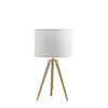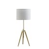- This table lamp features a trio of robust two-tone brass, gold and shiny gold metal legs, providing a stylish and stable base.The elegant design is beautifully complemented by a white cotton drum shade