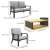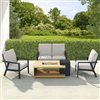 - The set includes 1 loveseat, 2 chairs and 1 firepit table