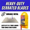 - The serrated utility blades engage multiple cutting surfaces simultaneously; reducing friction and enabling faster, easier cutting through various materials