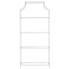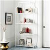 This 4-tier étagère offers a stylish way to store and display. Designed with a bright white finish, it features sturdy metal construction, clear open shelves and clean lines that create four layers of storage for the living room, kitchen or great room.