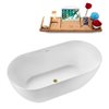 Streamline 59 L x 29.5-in W White Acrylic Round Freestanding Bathtub w/ Brushed Gold Centre Drain and Tray
