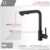 - The handle moves 90° to the front to allow ample range of motion and avoid hitting the backsplash.