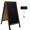 Display messages in style with this sophisticated standing chalkboard sign. Offering two large 23" W x 47" H chalkboard surfaces, this A-frame design provides ample space for writing or drawing on both sides. The sandwich board-style frame, available in rustic brown or whitewash, effortlessly complements any décor. Built for durability, the freestanding blackboard frame is made from sturdy pine wood, while the backboard combines iron and MDF for long-lasting support. The chalkboard sandwich board surfaces are crafted from magnetic porcelain steel, and the included two magnetic clips make it easy to attach papers or menus. Designed with iron hinges and PE foot caps for enhanced stability, this chalkboard is suitable for both indoor and outdoor use. It comes complete with 4 traditional chalk pieces, and an eraser, making it simple to create and clean up messages.