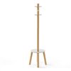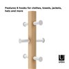 Umbra Pillar Freestanding White and Natural 6-Hook Wood Stool and Coat Rack