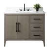 Vanity Art 42 W x 22 D x 34-in H Grey Wood Single Sink Bathroom Vanity w/ Engineered Marble Top and Matte Black Handle