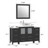 Vanity Art 54 W x 18 D x 36-in H Black Single Sink Bathroom Vanity w/ White Engineered Marble Top and Mirror