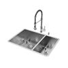 Let this all-in-one kitchen sink set from VIGO® complete your modern kitchen look. Constructed from the highest quality 16-gauge, 304 series stainless steel, the VIGO® 29" Endicott Stainless Steel Double Bowl Undermount Kitchen Sink is undercoated and padded with SoundAbsorb™ technology, which minimizes the noise of water flow while preventing condensation. The sink pairs beautifully with the dual-action VIGO® Edison Pull-Down Kitchen Faucet, which has a 360° swivel spout and a spray face that resists mineral buildup. Includes sink grids and strainers for each bowl, plus matching soap dispenser.