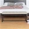 Spruce up your entryway or the end of your bed with our stylish transitional bench. With tufted linen upholstery, this bench makes for a comfy reading spot or seat to lounge on, while the metal base provides structural appeal. This bench works with a variety of design styles from modern or transitional to contemporary making it an easy addition to your home.