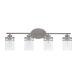 - Brushed nickel finish with clear glass shades