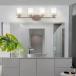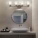 Four-light wall luminaire from Catalina. Perfect for the bathroom as a vanity light. Requires four A type bulbs of up to 60 W (not included). Made of metal with a brushed nickel finish and equipped with clear glass shades, this sconce is easy to install. Mounting hardware included. Backed by a 1-year warranty.