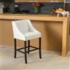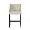 WELLFOR Off-White Faux Leather/Black Wood Contemporary Bucket Seat Bar Stool w/ Nailheads