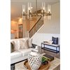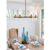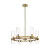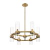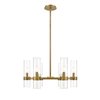 Take a minimalist approach to lighting a custom space, starting with the sophisticated design of this rubbed brass iron and glass 6-light chandelier. Perfect for a small- to mid-sized contemporary dining room, kitchen, or hallway, the Datus chandelier delivers chic style with a round frame crafted of warm rubbed brass finish steel, dressed up with delicate clear glass cylinder shades.