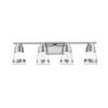 Modernize your master or guest bath decor with a fresh, lively lighting design. Offering a stylish maritime-inspired effect, this 4-light vanity fixture blend brushed nickel finish steel with the textured beauty of clear glass.