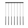 Matte black creates bold contrast and depth for this modern seven-light linear silhouette. Its elongated design is paired with slim shades, each housing integrated LEDs that are both dimmable and energy efficient. Add this striking fixture over a kitchen island or dining table to create inviting, impeccable illumination.
