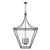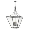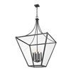 Illuminate an entire open space with a charming eight-light chandelier designed with an iteration of the lantern motif. Iron ore finish steel framing creates an inverted pyramid, tent-like silhouette, as slightly seeded glass panels reveal a cluster of candelabra-style bulb mounts. This fixture is dimmable to adjust light levels as desired.