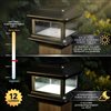 Fabricated from durable cast aluminum with powder coated finish, the Colonial solar post light is designed to fit over a nominal 4 inches x 4 inches wood post. The attractive Colonial post light is complimented by using real pebbled glass panels. Built to our stringent quality standards it will stay lit for up to 12 hours.
