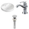 - Includes: 1 bathroom vessel sink in white, 1 bathroom sink faucet in chrome, 1 bathroom sink drain in chrome