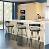 A distinctly modern take on the stool, this model blends trendy metal base with rounded lines and integrated armrests for optimal seating comfort. And with its stunning, sophisticated backrest, it’s a head turner for sure! A must for your kitchen island.