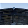 - Grey granulated rust-resistant powder-coated frame made of heavy-duty aluminum and laser cut galvanized steel connectors