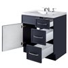 - Three soft close drawer and door hinges ensure a quiet application, and the bath vanity with sink prevents slamming and reduces wear over time