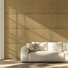 - Modern faux wood 3D wall panels bring the natural look of wooden slats, adding warmth and texture to any space